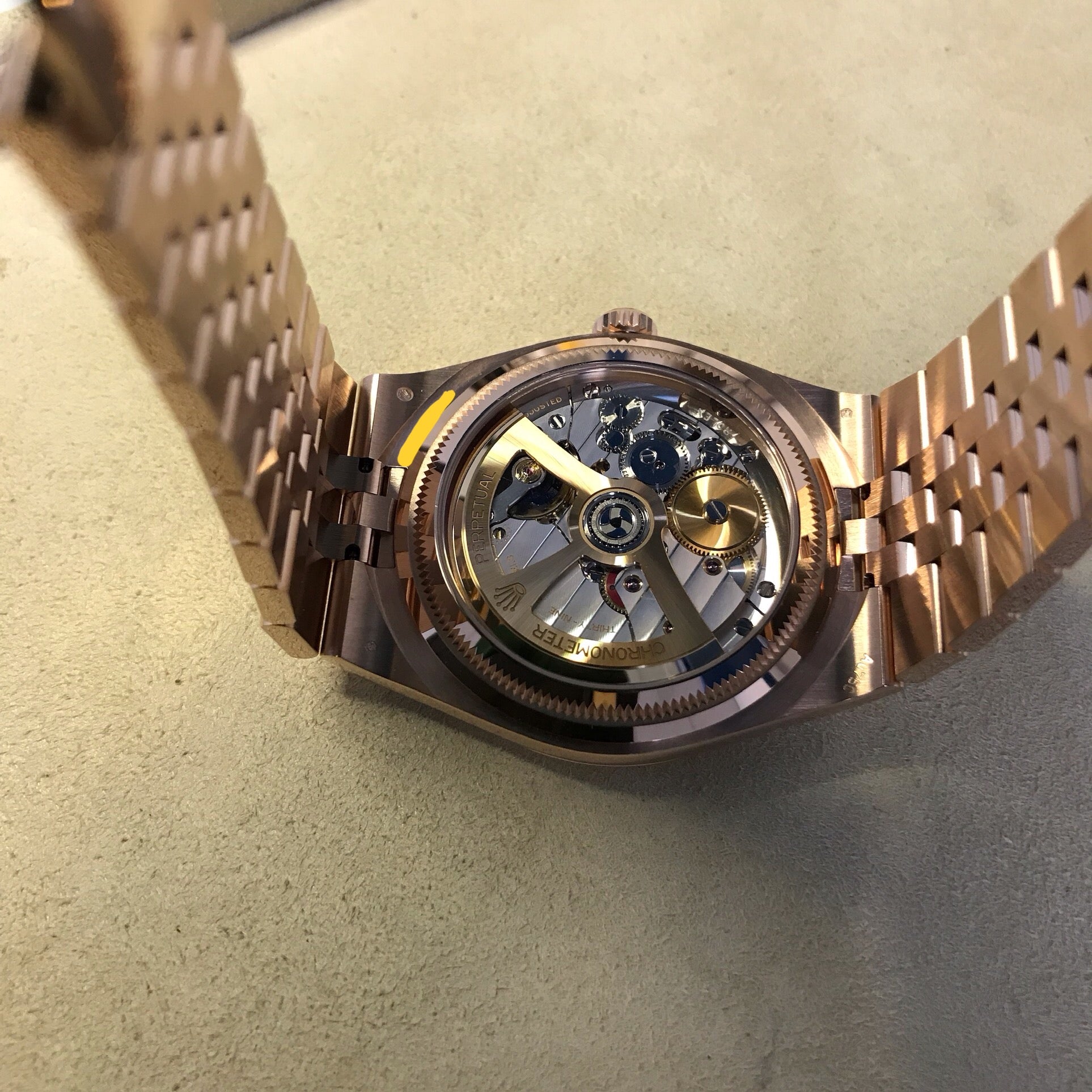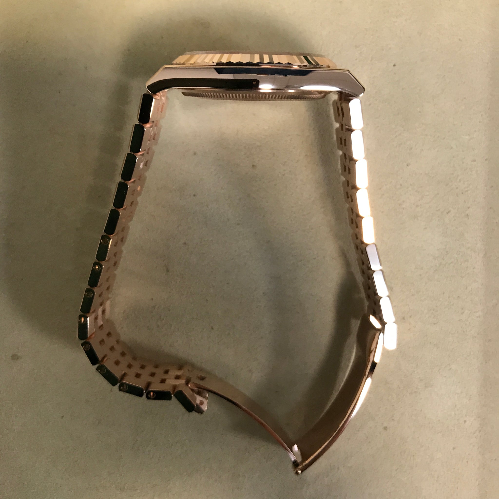 Sculpted from Rolex’s proprietary Everose alloy, this model radiates sunset tones across case, bezel and three-piece Oyster bracelet.